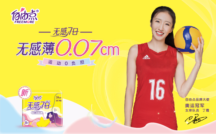 作为中国卫生巾一线品牌,在产品上,自由点契合了以丁霞为代表的新一代90后体育人对专业品质、创新服务的追求,于行业屹立不倒的背后,是自由点多年对卫品产业链模式的深耕、对每款产品的严格把关,以及顺应发展潮流创新驱动品牌的坚持。