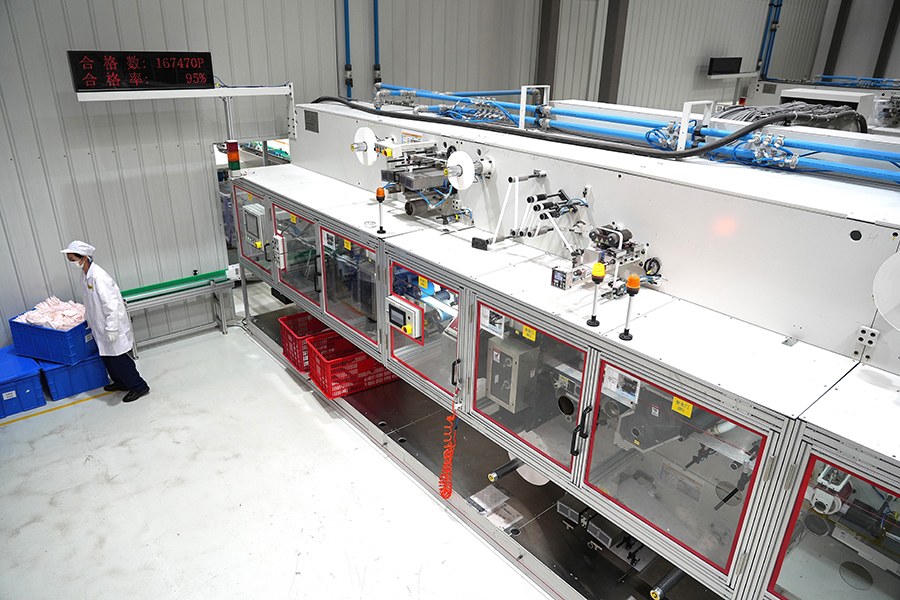 3月22日,自由点重庆工厂,卫生巾生产线开足马力运行。随着一片片卫生巾即将进入包装环节,智能化质检设备的存在,让肉眼不可见的瑕疵无所遁形。(邵以南 摄)